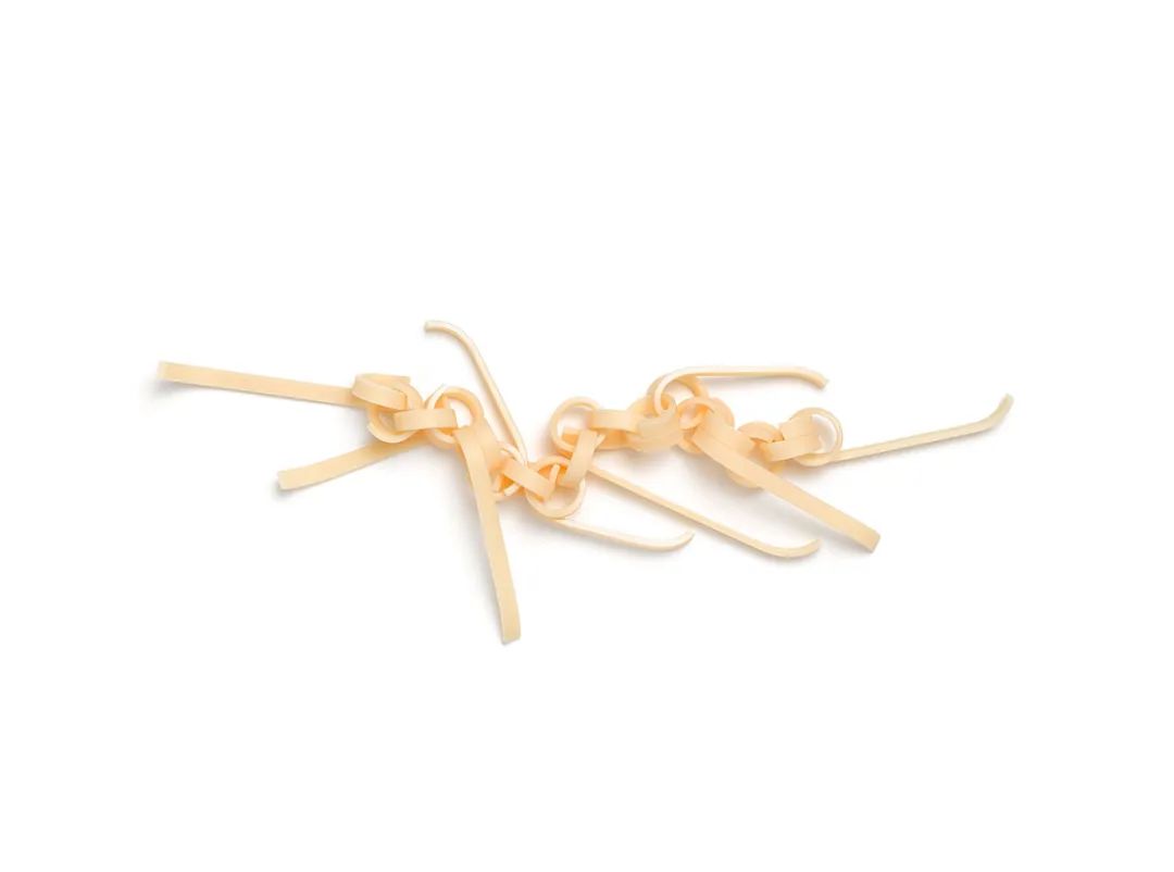 在這個標(biāo)題恰如其分的展覽中,Schutz 以鏈條的概念和形式為中心來錨定項鏈、耳環(huán)和胸針系列,其中大部分都是用這種配置構(gòu)造的。Schutz 發(fā)現(xiàn)鏈條的力量具有重要意義,“不同的是,連接在一起的鏈接比單獨的鏈接更強大,”她反映道。除了銀鏈(有時是青銅鏈)外,Schutz 還添加了深色和淺色云母、充滿活力的礦物和寶石,以及再生手工紙。舒茨的工作繼續(xù)受到紐約市環(huán)境的啟發(fā)。“我的環(huán)境是城市——在玻璃和混凝土的城市里,我探索空間、陰影和自然?!?nbsp;