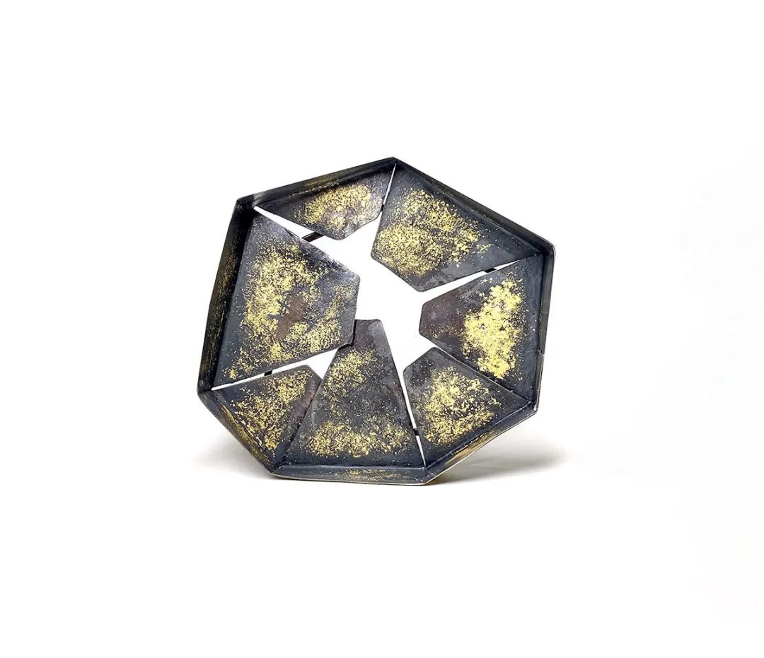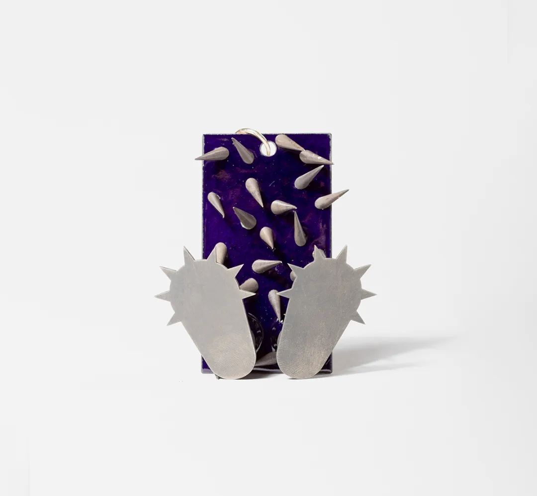 Morningstar 的作品可能會被誤認(rèn)為玩具。它們的角和突出的尖刺在平坦的琺瑯平面上投射出陰影,暗示著作品的黑暗暗流。我在玩具的規(guī)模上玩弄惡毒的符號和卡通式的邪惡描繪,并將搪瓷平面夾在它們之間,提供一種改變的邪惡美學(xué),提出了邪惡的效價是固有的還是分配的問題。