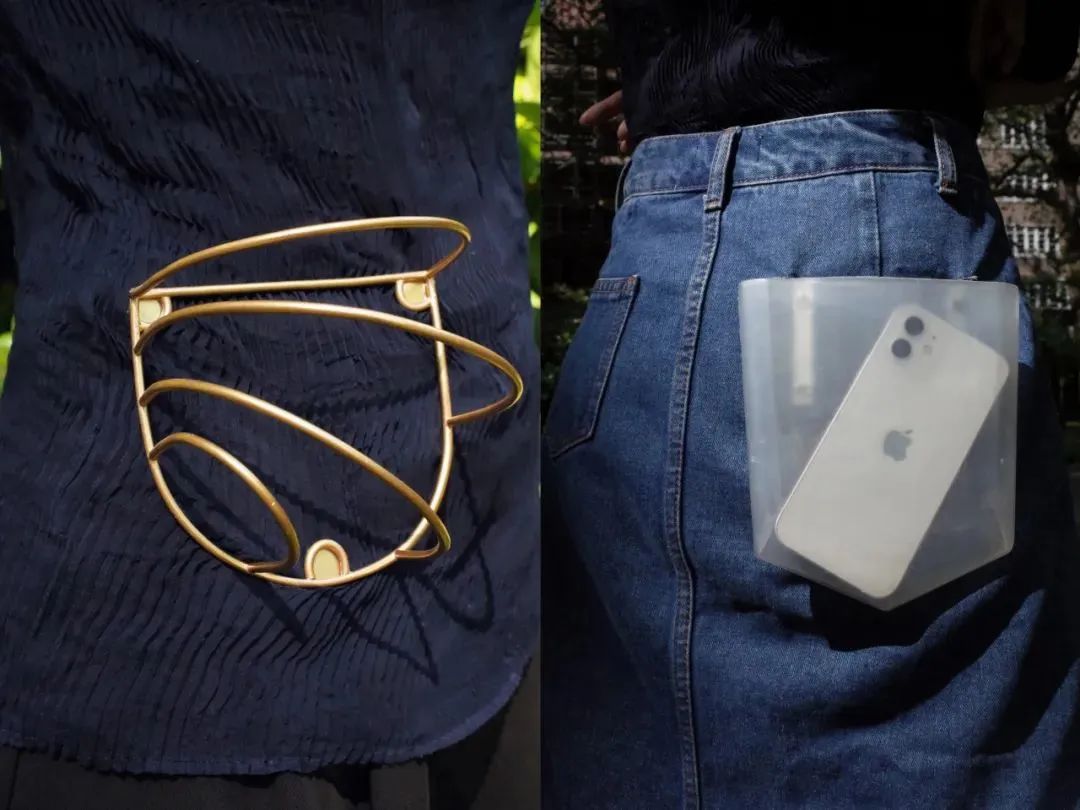 此外,我還思考過(guò)三維口袋的概念,擺脫傳統(tǒng)的平面結(jié)構(gòu)。特別是針對(duì)女性,我希望設(shè)計(jì)具有立體形狀的口袋,解決了歷史上在容量和服裝上的缺失。我堅(jiān)信實(shí)用性對(duì)于口袋發(fā)揮攜帶物品功能至關(guān)重要。因此,我努力創(chuàng)造視覺(jué)上吸引人的三維口袋,將實(shí)用性和美學(xué)相結(jié)合。