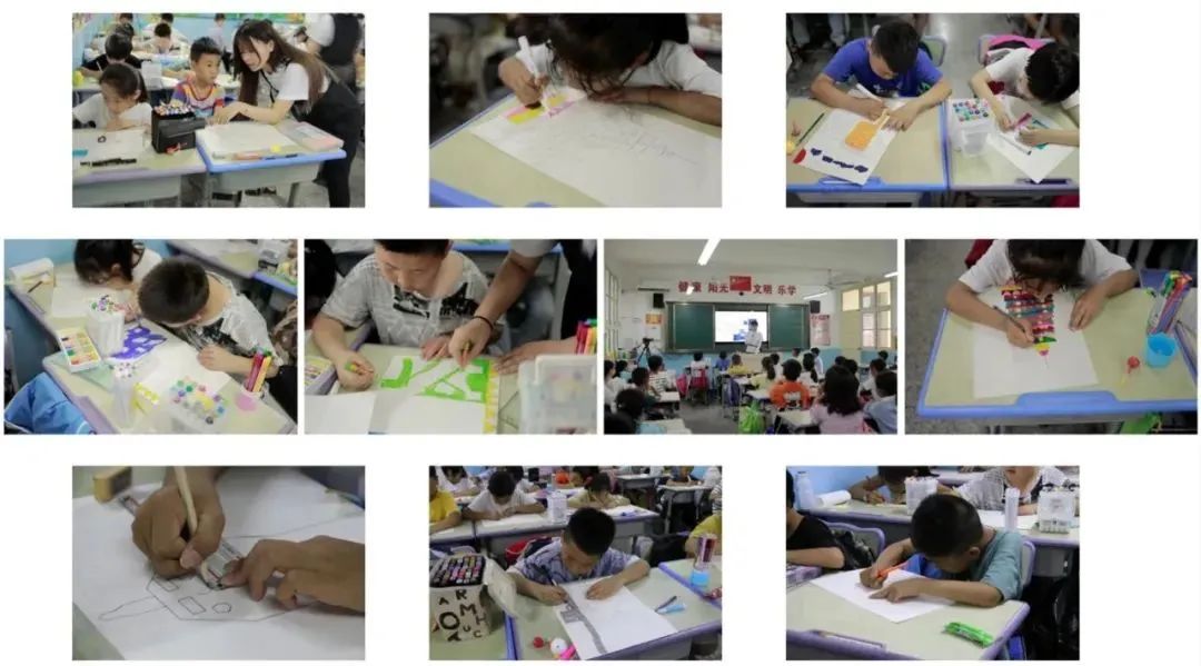 “如果村莊變富裕了,你的夢(mèng)想場(chǎng)景是什么?你的父母會(huì)回家在當(dāng)?shù)毓ぷ鲉??”以此為主題,我為留守兒童提供了一個(gè)公共藝術(shù)課程,孩子們?cè)贏4紙上繪制了他們心中的夢(mèng)想國(guó)家。