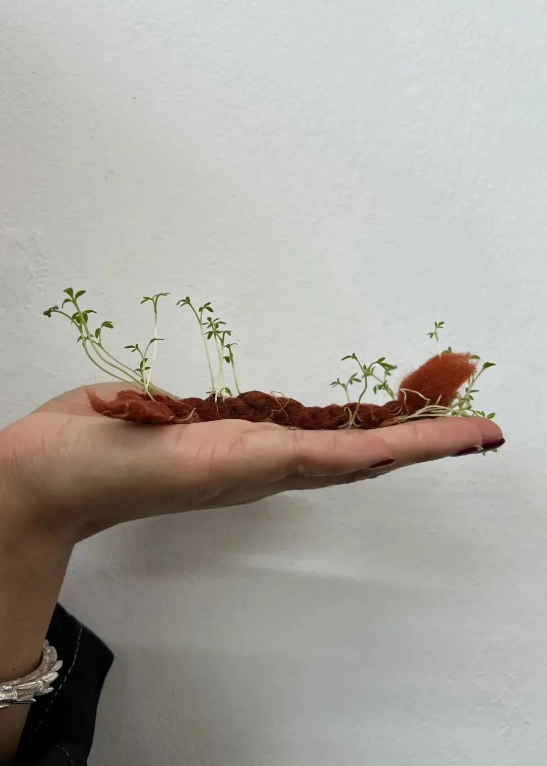 微型蔬菜從嵌入手工編織羊毛中的種子中生長