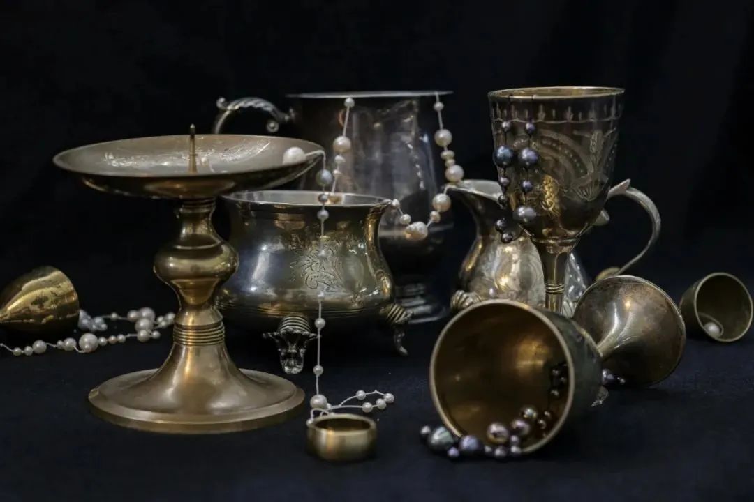 這一對酒杯,它們在底部由一串珍珠相連,并且杯中仿佛盛著美酒。人們可以敬杯來表達彼此之間的關系,同時也象征著兩個相似頻率的相似事物之間的共鳴,一種一對一的關系。