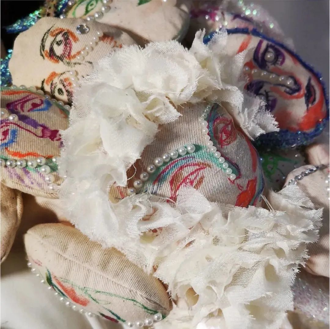 Paint, Fabric, Metal (Copper and Silver), Pearl