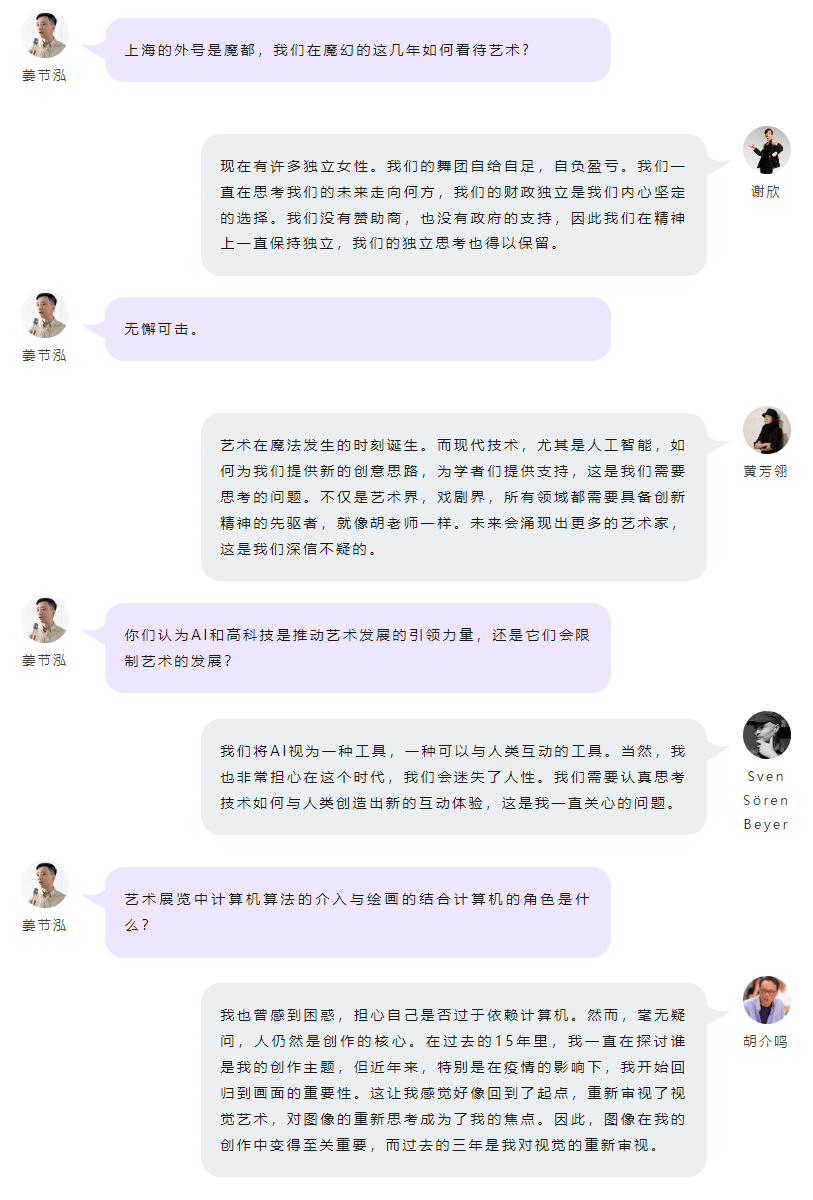 本次國(guó)際藝術(shù)節(jié)的全球?qū)υ挒樗囆g(shù)家、策展人和觀眾們提供了一個(gè)交流創(chuàng)意、探討技術(shù)與藝術(shù)融合的平臺(tái)。與會(huì)者們共同探討了藝術(shù)在當(dāng)代社會(huì)中的地位,強(qiáng)調(diào)了創(chuàng)意與可持續(xù)性的重要性。這場(chǎng)對(duì)話不僅為參與者們帶來(lái)了新的啟示,也為上海的藝術(shù)界注入了新的活力與想象力。