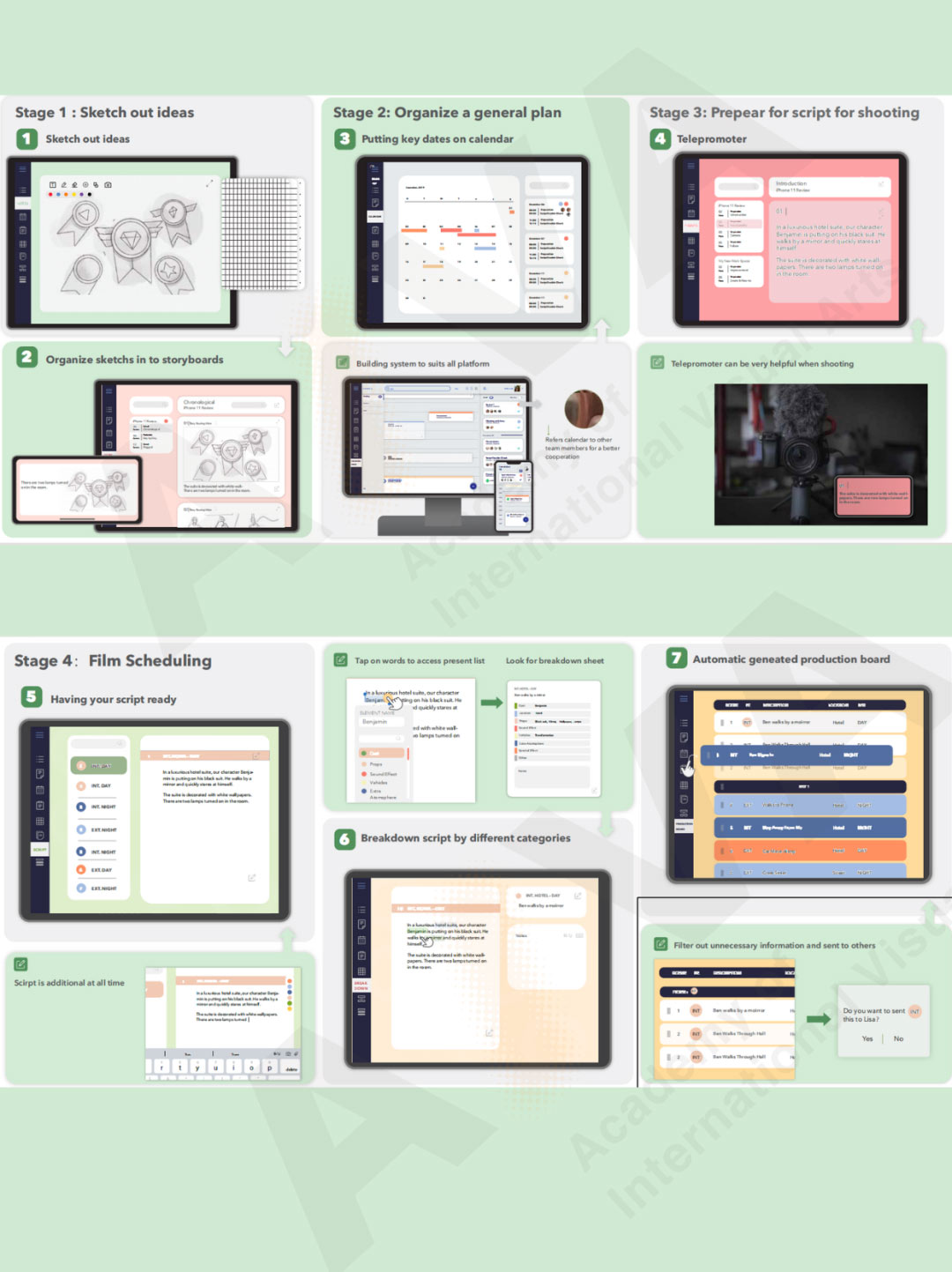 作品《Film Scheduling Application》 是一個主要服務于電影時間表的應用程序。作者將一部電影的制作拆解成不同的小板塊,并借助APP使得普通人也能簡單上手,將一些小的靈感迅速轉化成完整的流程。
