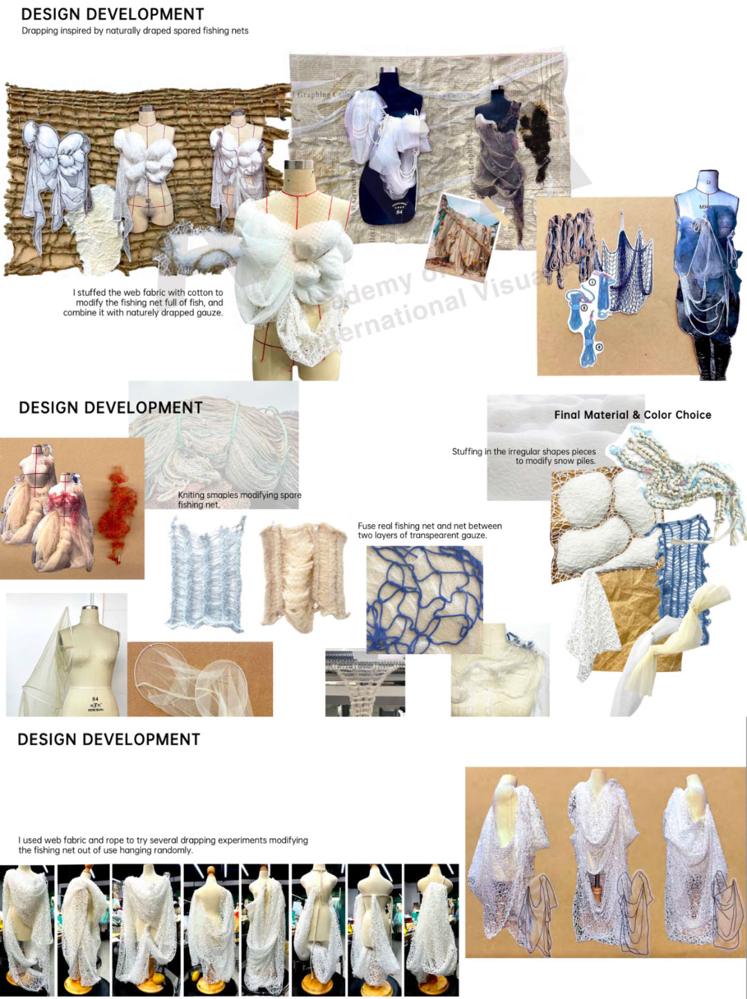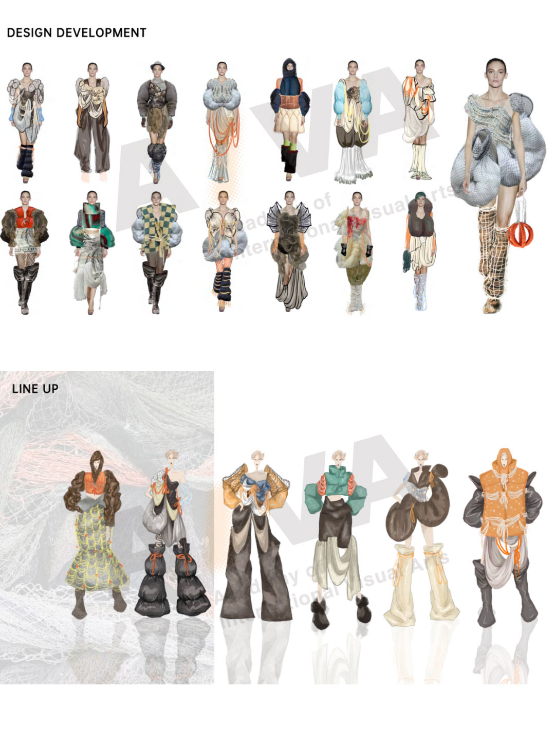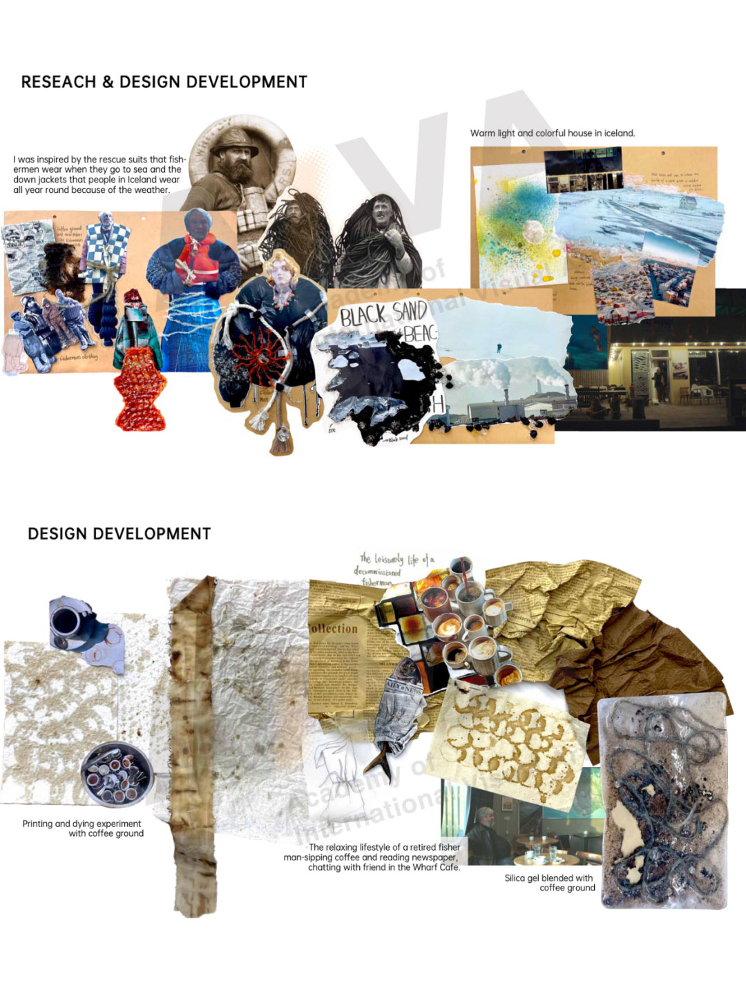 我的靈感來自魚人出海時(shí)穿的救生衣,以及冰島人因天氣原因常年穿著的羽絨服。