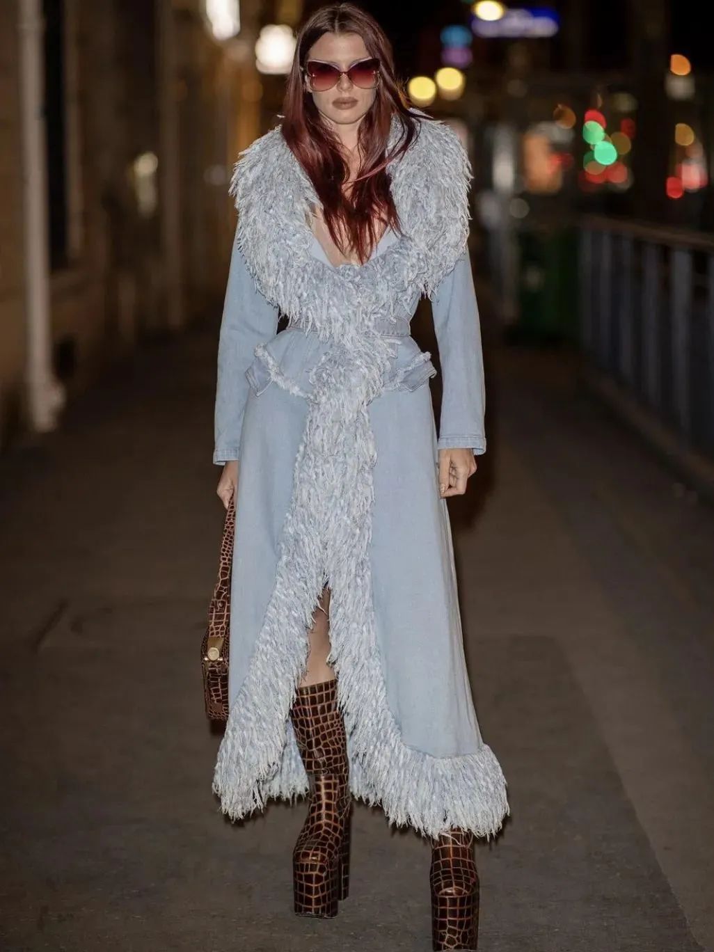 非常規(guī)面料組合:如用牛仔做出皮草效果大衣,在蕾絲上加入皮革或鋼釘,打破女性化的刻板印象;