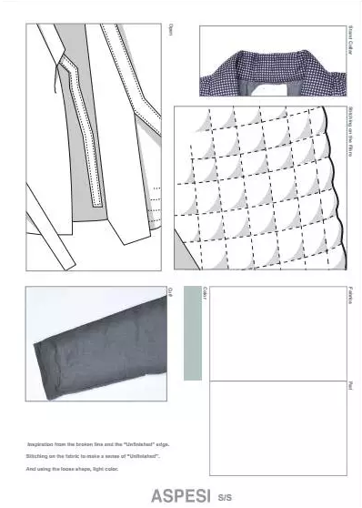 第三,設(shè)計的衍生發(fā)展過程是最重要的,因為可以反應(yīng)作品創(chuàng)作的流程,你的成衣是經(jīng)過一系列嘗試實驗得來的,而不是憑空而來的。