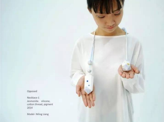所以在“當(dāng)代首飾”這個(gè)概念最先提出的時(shí)候,藝術(shù)家都是反思首飾本身的意義、材料的價(jià)值和首飾與身體之間的微妙關(guān)系。比如這張圖上使用各種材料(不論貴賤)進(jìn)行創(chuàng)作的雕刻首飾藝術(shù)家Shinji Nakaba;Kie Ok Kim將皮膚上殘留的痕跡作為首飾作品的《第二層皮膚》;Hilde de Decker自己種植出獨(dú)一無二的西紅柿戒指;Otto Kunzli用不同符號(hào)制作的《Big American》項(xiàng)鏈;Courtney請(qǐng)舞者在硅膠材料里進(jìn)行形體表演來表達(dá)生命的誕生;當(dāng)代首飾也可以是隨著新近科技和材料的革新所制作出的作品;右下角設(shè)計(jì)師Sofia在使用3D打印筆“繪制項(xiàng)鏈”。這類有想法、有設(shè)計(jì)、有內(nèi)涵的當(dāng)代首飾是國(guó)外藝術(shù)院校首飾專業(yè)所需求的主流。