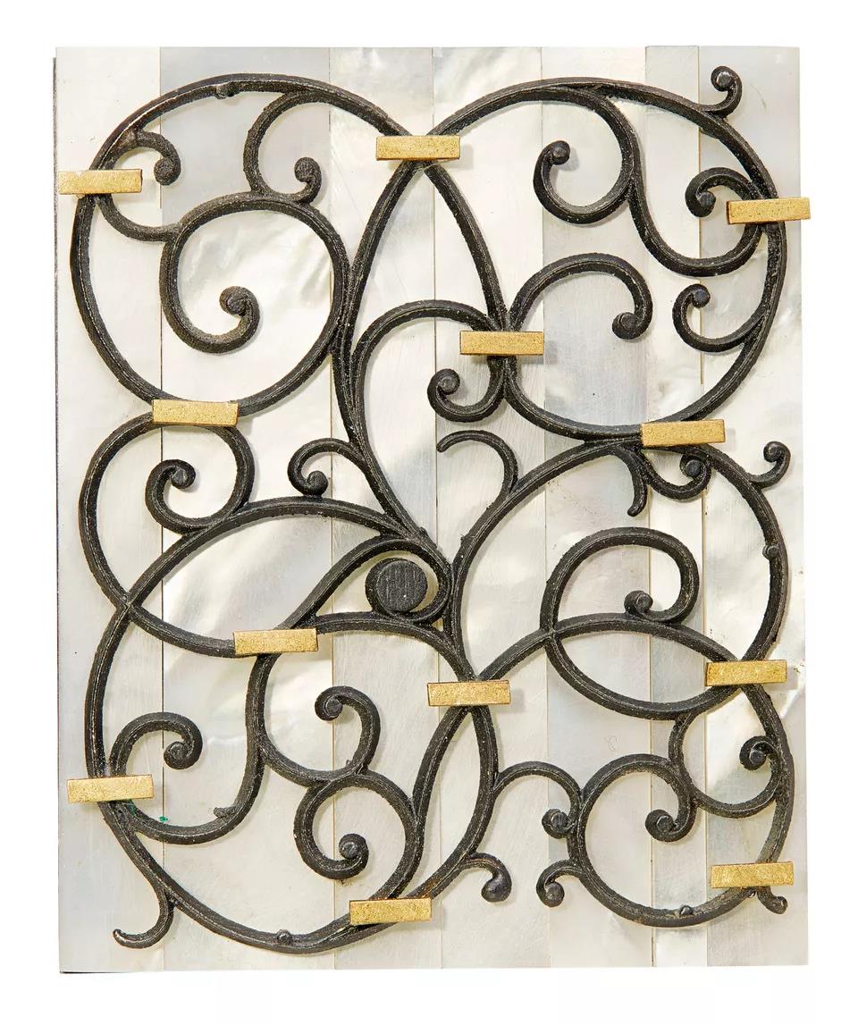 這件作品里使用了黃金,作為鐵金屬的對比表現(xiàn)了材質(zhì)、價值與強(qiáng)度、工藝與精細(xì)度等方面的階級劃分。鍍金后的鐵與原本的黑色調(diào)形成對比,黃金為裝飾增加了細(xì)節(jié)。不僅如此,黃金的網(wǎng)格包容了也控制了這件裝飾,試圖顛覆本體。