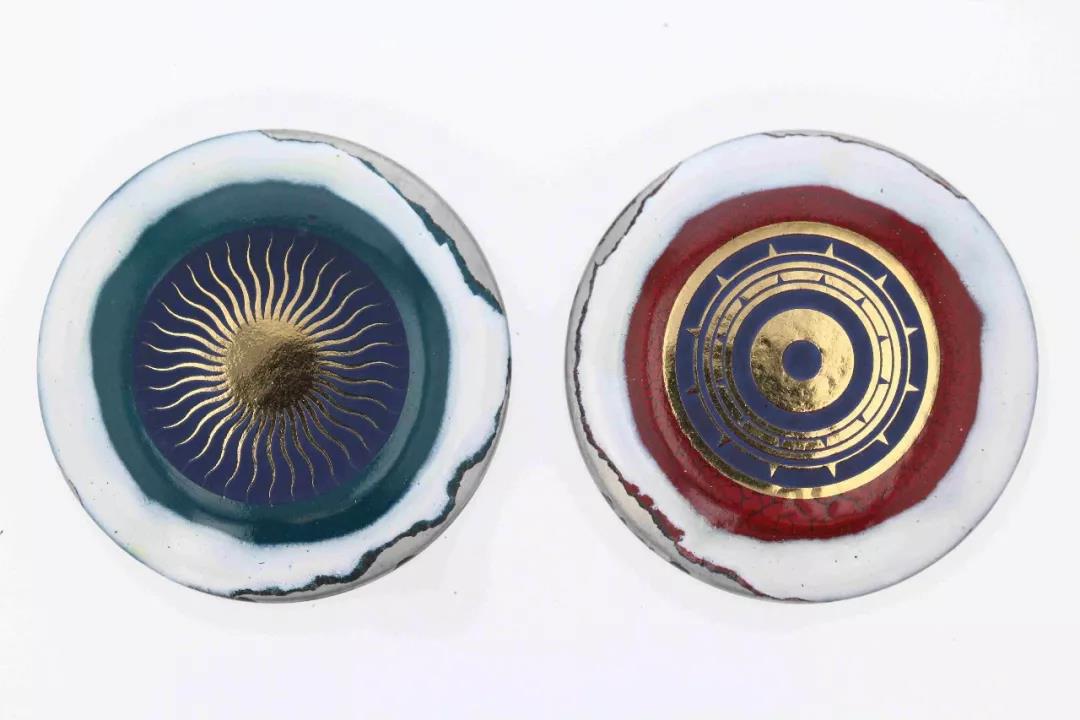 我的作品在回收的不銹鋼腕表表背上使用了琺瑯工藝,這些“注視者”徽章同時映射了上述的兩項敘事。"