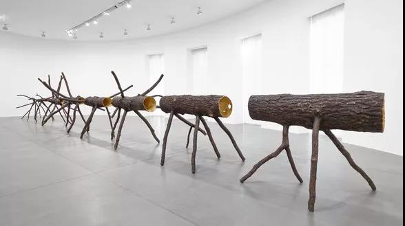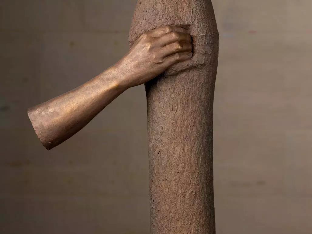 在新雕塑《等效》中,Penone用石膏模型制作了樹木的部分,然后用青銅澆鑄,并逐塊豎立起了一棵人造樹。從根部出現(xiàn)了一種擬人化的樹皮螺旋,成為了一個形象,面對著它的植物對應物。Penone認為這種融合是gesti vegetali(植物般的手勢)。在他的手中,人體從樹中解放出來,而樹又揭示了人體的內在特質。利用雕塑的媒介和技術,他釋放了萬物的生命,從而將自然的本質與人類行為的感覺結合了起來。