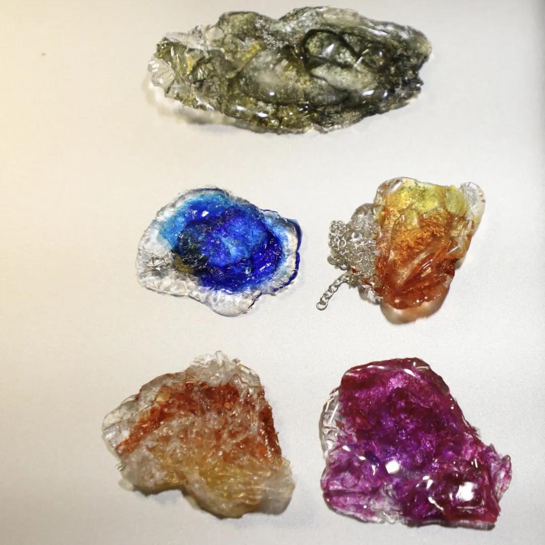 這個材料做手工的人應該比較熟悉,多數(shù)是用來做簪子上的水晶仿真花。所以剛開始我的思維就被限制了,一直糾結于造花液所呈現(xiàn)出來的造型,而忽略了材料本身的可能性。
