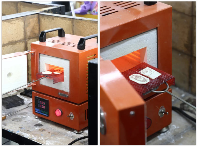 主要用于制作琺瑯燒造、制作琺瑯首飾以及琺瑯裝飾片?,m瑯還有所謂軟琺瑯與硬琺瑯之分,所以琺瑯區(qū)的設(shè)置要區(qū)別對(duì)待?,m瑯區(qū)主要配備高溫電爐、鋼砧、電熱風(fēng)烤箱、工作臺(tái)、通風(fēng)管道設(shè)備等。小型的工作室可能不必要配備燒制琺瑯的區(qū)域。