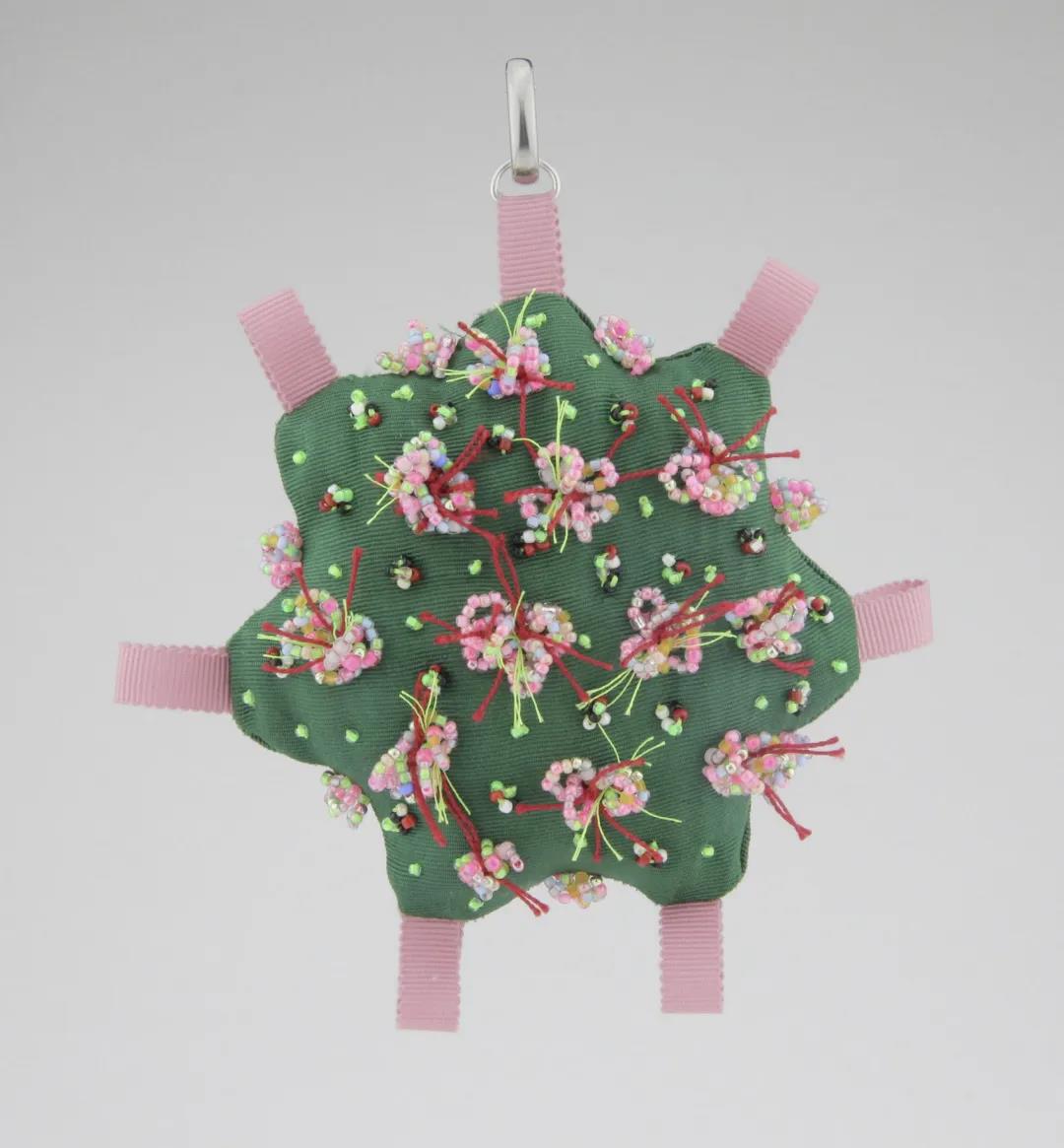 形容病毒有著“以尖刺為裝飾”的外表,醫(yī)學(xué)作家Ronnie Henry在美國疾病管制與預(yù)防中心CDC網(wǎng)站上的一句話,啟發(fā)了藝術(shù)家詩意的聯(lián)想。