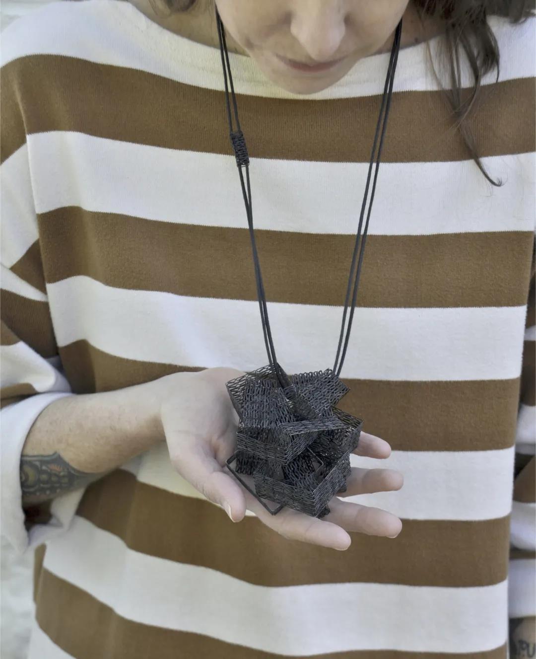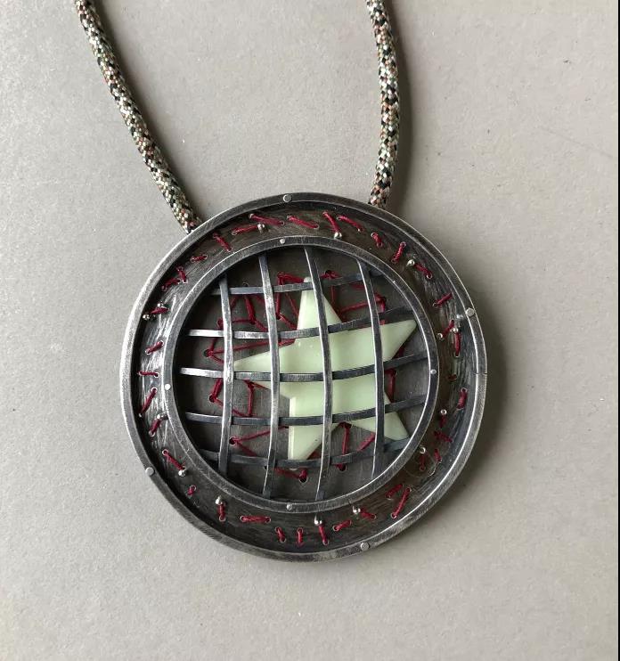 藝術(shù)家 Barbara Seidenath能感受到疫情的嚴肅與無情,但她仍試圖在最初被認為是負面的情況里尋找積極的一面。許多學(xué)生在疫情期間無法使用工作室,因而渴求有機會學(xué)習(xí)一些以非金屬為中心的新知識,于是Barbara邀請擅長刺繡與串珠的首飾藝術(shù)家Breana Ferrara為學(xué)生們開啟了線上首飾課堂。這項新學(xué)習(xí)到的技法也成為本次創(chuàng)作的最佳呈現(xiàn)方式。