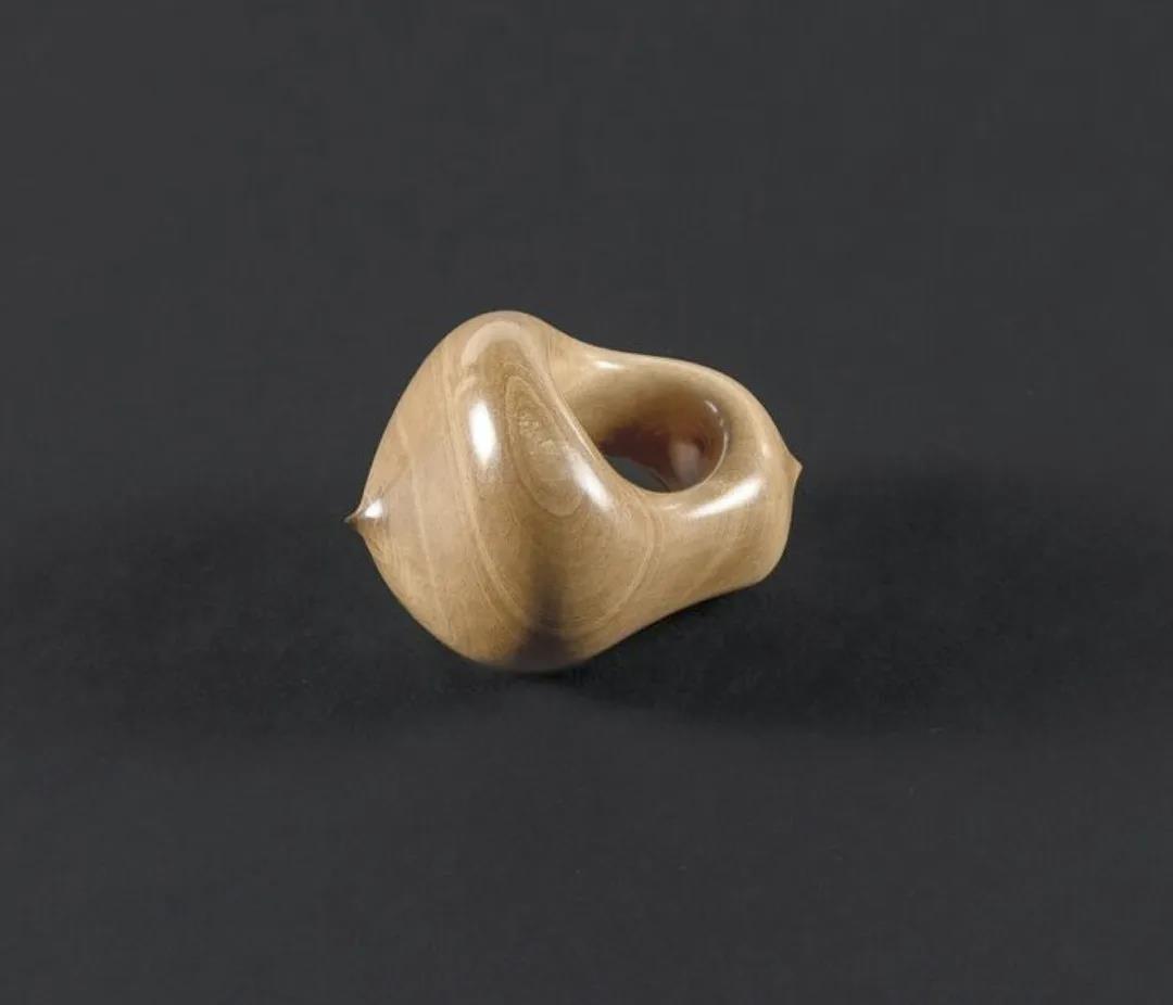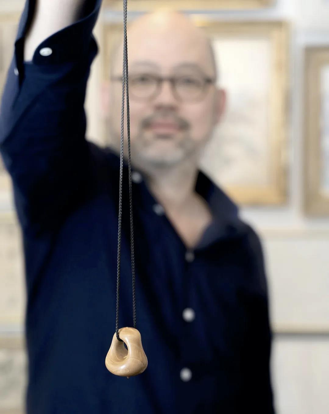 這個形似童話故事中蘑菇屋的環(huán)形掛墜,是由藝術(shù)家Yutaka Mineghisi選用有著一萬年歷史的猛犸象牙化石雕刻而成。它的外表十分光滑,但也要小心 - 它隨時可能劃傷您。