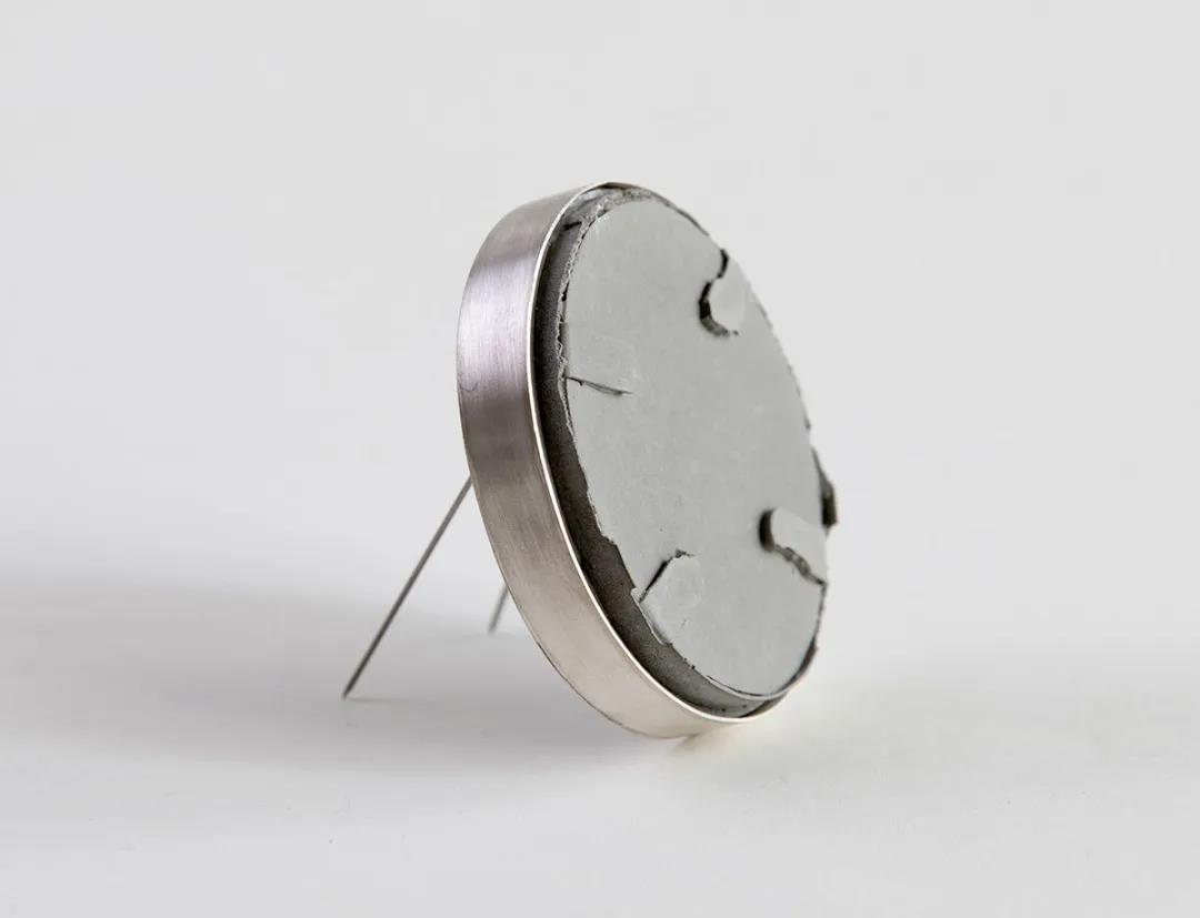 steel, powder coat, cement, paint, sterling silver, nickel silver, and resin