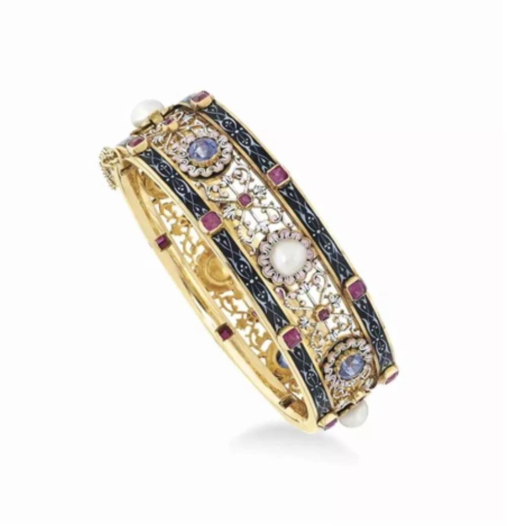 名稱:19世紀(jì)晚期的琺瑯鑲寶石手鐲