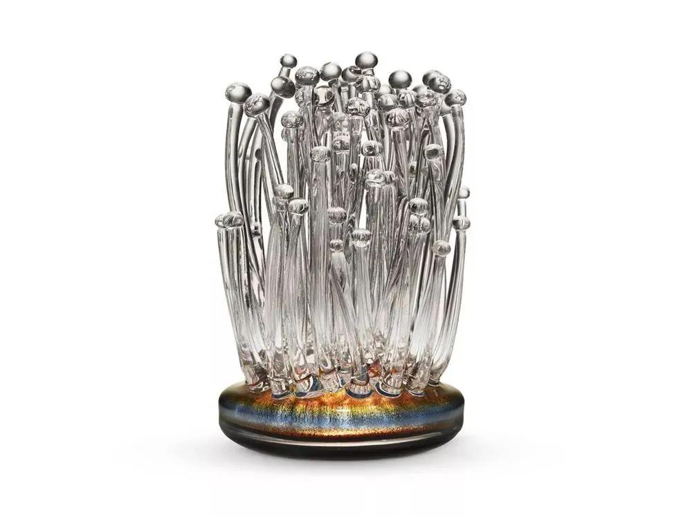 一件典型的Hogan作品的制作過程,一半是靈感,一半是流汗的勞動,夾雜著一絲瘋狂科學(xué)家的味道。“硅、蘇打和石灰石以正確的比例混合并加熱成玻璃,”Hogan說,通過簡單的玻璃制作。他的工作室有兩個熔爐,可以容納350磅的玻璃。Hogan解釋說:“為了塑造玻璃的形狀,我們在一個類似于鐵匠鋪的熔爐里工作。”