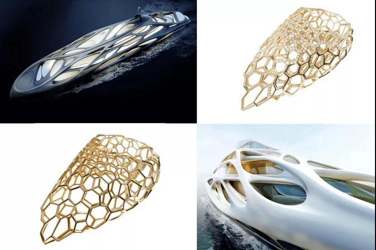 Zaha Hadid為Caspita設(shè)計(jì)的手鐲,以及其為Blohn&Voss設(shè)計(jì)的游艇