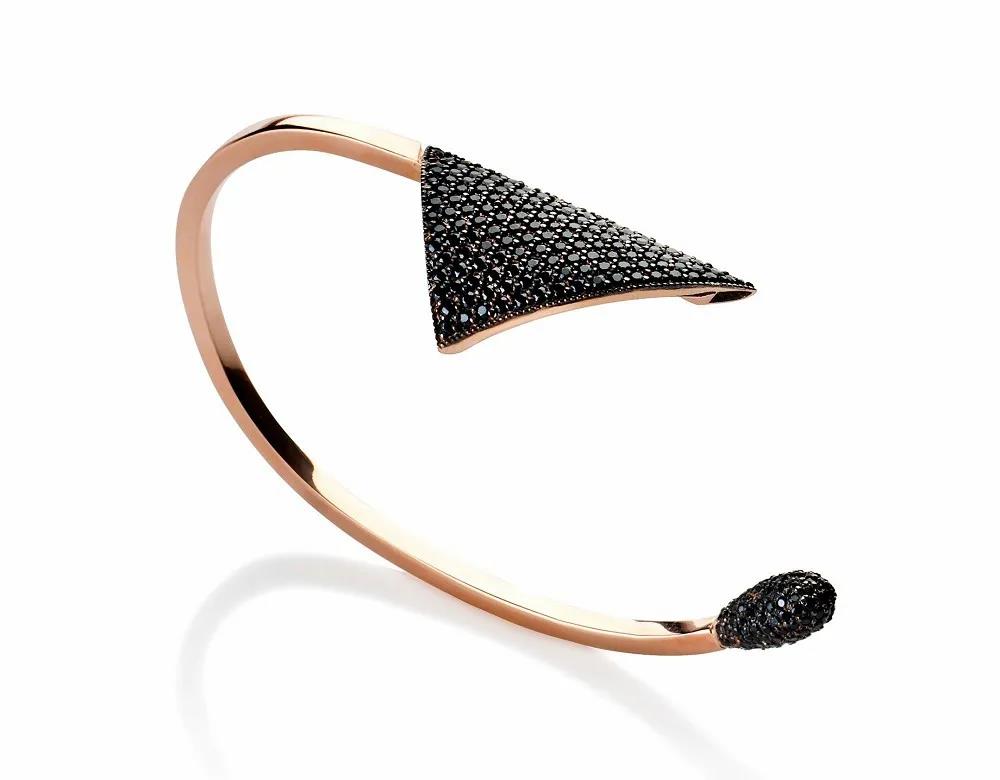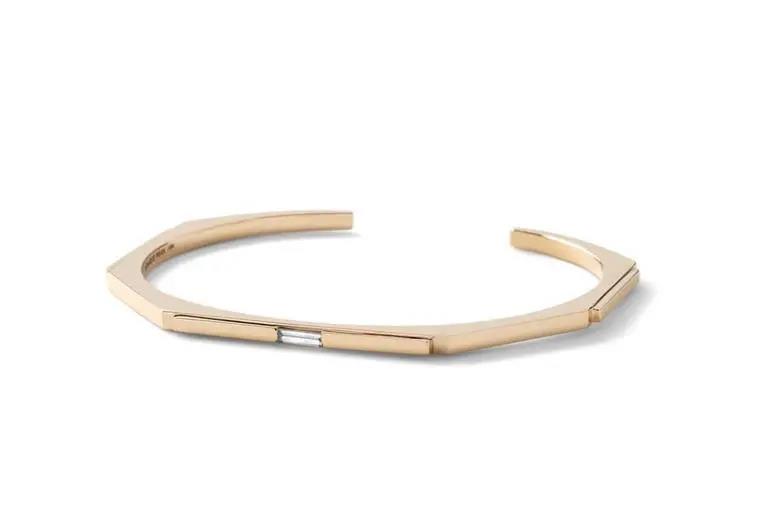 長鉆鑲嵌于沉穩(wěn)的幾何形態(tài)中。Bracelet from Seto series by Monique Péan
