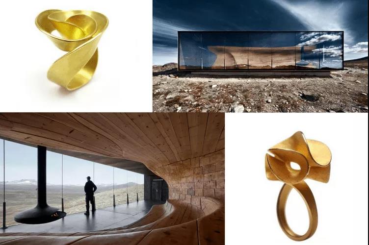 戒指分別來自Door Edelsmenden及Vera Garcia。建筑是由SNØHETTA & KNUT BJØRGUM設(shè)計(jì),位于挪威Dovrefjell國家公園的野生馴鹿觀測中心。