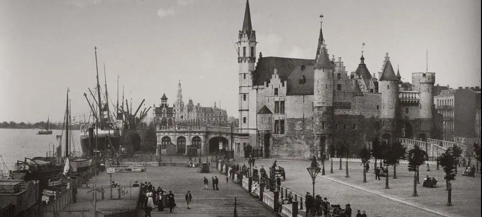19世紀(jì)的安特衛(wèi)普港。自15世紀(jì)起,由于Lodewyk van Berken發(fā)明了新式的鉆石打磨器具,加上得天獨(dú)厚的航運(yùn)條件,安特衛(wèi)普從此成為歐洲的鉆石加工及交易中心。時(shí)至今日,安特衛(wèi)普仍是歐洲第二大的國(guó)際港口。