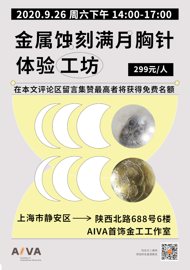 了解工坊詳情,請戳鏈接:中秋首飾體驗(yàn)工坊 | 眸中的月光 - 金屬蝕刻胸針工坊
