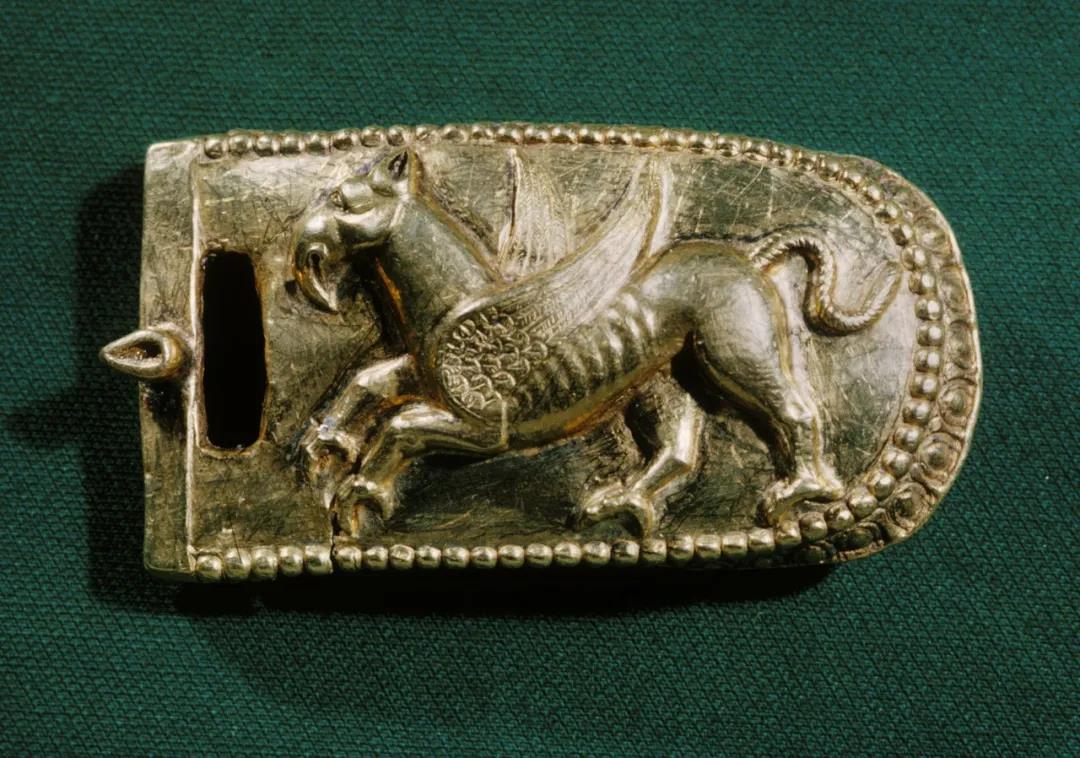 公元前一世紀(jì)希臘樣式的 Griffin 獅身鷹首獸腰帶扣,出土于土耳其。老鷹為百鳥之王,獅子為萬獸之王,獅身鷹首獸一直是王者與領(lǐng)導(dǎo)能力的象征,也代表力量與勇氣。