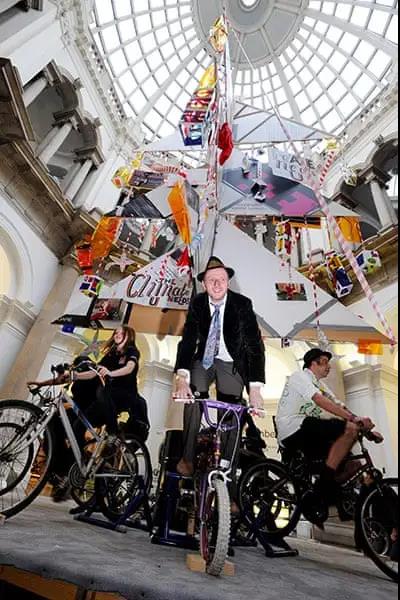 藝術(shù)家Bob and Roberta Smith在2008年創(chuàng)作了“自己制作圣誕樹”的互動(dòng)作品,完全突破了傳統(tǒng)圣誕樹的樣貌,組成樹木主題的鮮艷旗幟和騎著自行車,構(gòu)成了一幅當(dāng)代人的狂歡圖景。