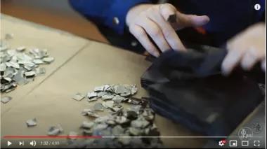 裝開子:已在10公分見方的烏金紙包內(nèi)被打開的金捻子叫“金開子”,需要繼續(xù)捶打成箔,將“金開子”小心翼翼地用鵝毛趁口風(fēng)挑起放入20公分見方的烏金紙包內(nèi)(俗稱家生),此道工序叫裝開子。