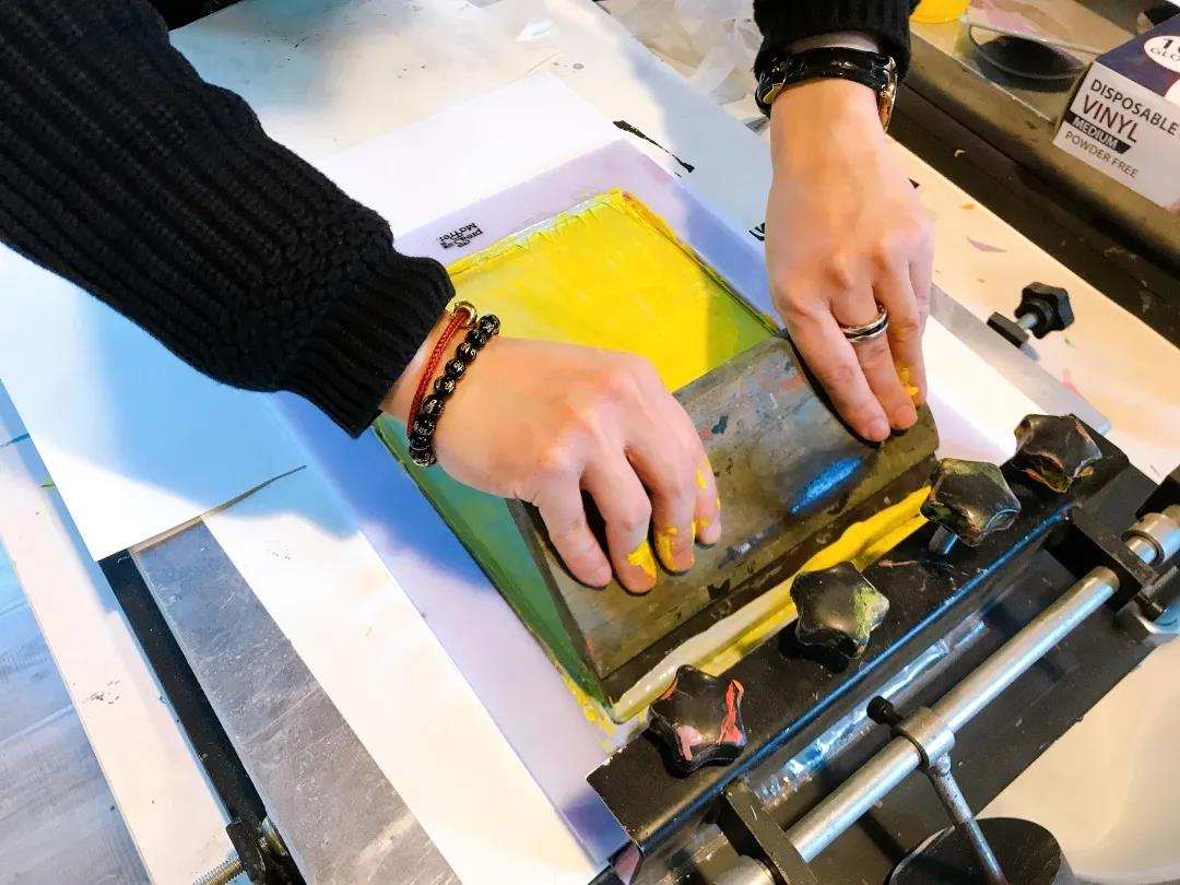 ▲ 在之前AIVA的藝術(shù)通識(shí)課上,同學(xué)們和Chen老師一起動(dòng)手,制作了自己的單色絲網(wǎng)版畫作品,如果你想看到課堂現(xiàn)場(chǎng)可以戳這里回顧。