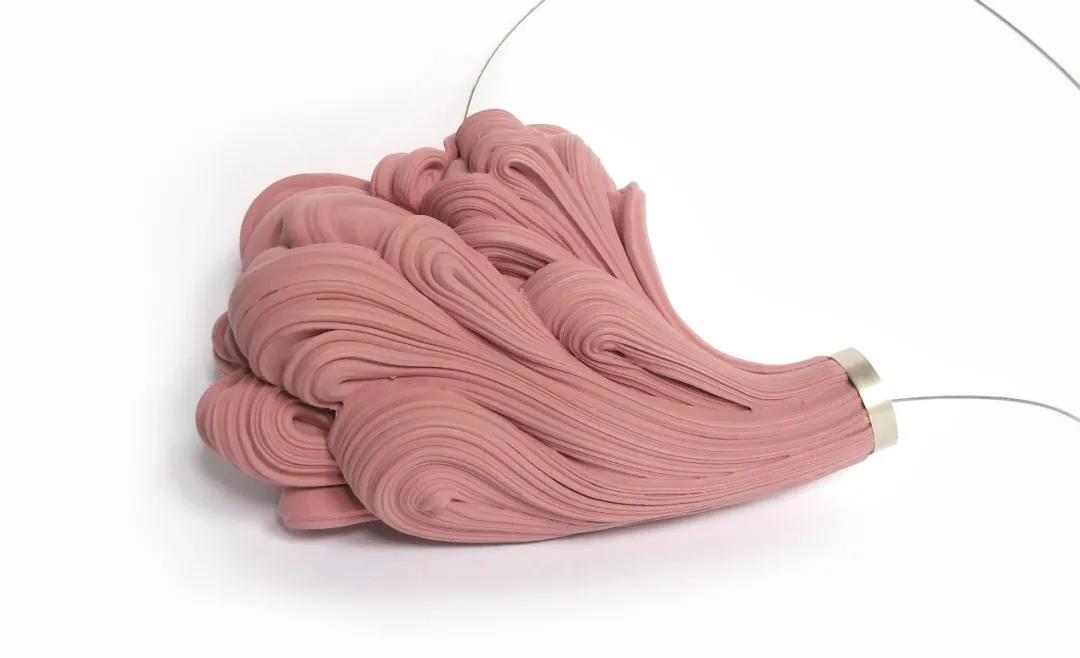 Molly熱衷于將無形的社會思考通過其抽象的視覺語言轉(zhuǎn)化為有形的可佩戴身體雕塑及裝飾藝術(shù)。她擅長運(yùn)用曲線和曲面將堅(jiān)硬的材質(zhì)呈現(xiàn)出柔軟的造型氣質(zhì),作品風(fēng)格溫柔而堅(jiān)定。