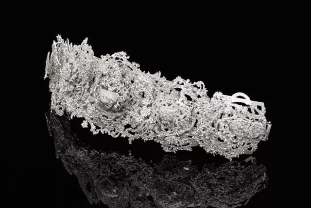 田口老師在其作品中使用了傳統(tǒng)的wabori (和彫り,日式刺青雕刻技術(shù)),耗時(shí)費(fèi)力的地雕刻出無(wú)比耀眼的銀表面,給人仿佛鑲滿鉆石的視覺(jué)感受。這樣的表面是不可能拋光的,所以在銀表面鍍上銠以防止失去光澤,這種日本雕刻技術(shù),一直主宰著他的作品直到今天。