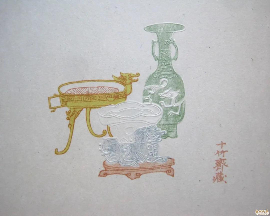 拱花,即將版雕成凹版浮雕效果,版內(nèi)涂中藥白笈水,然后將宣紙按畫面需要部位局部濕水捶入,使紙面陷下緊貼雕版凹入的畫面,然后使其干透固定,紙面既出現(xiàn)無色的浮雕效果圖形,因圖形拱起而稱「拱花」。