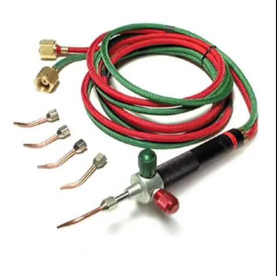 乙炔焊槍(ACETYLENE/AIR TORCH) 使用時需要安裝一個乙炔氣體單罐,氣體在噴頭處與空氣混合??梢耘浜细鞣N類型的焊嘴,焊接大件和小件作品。