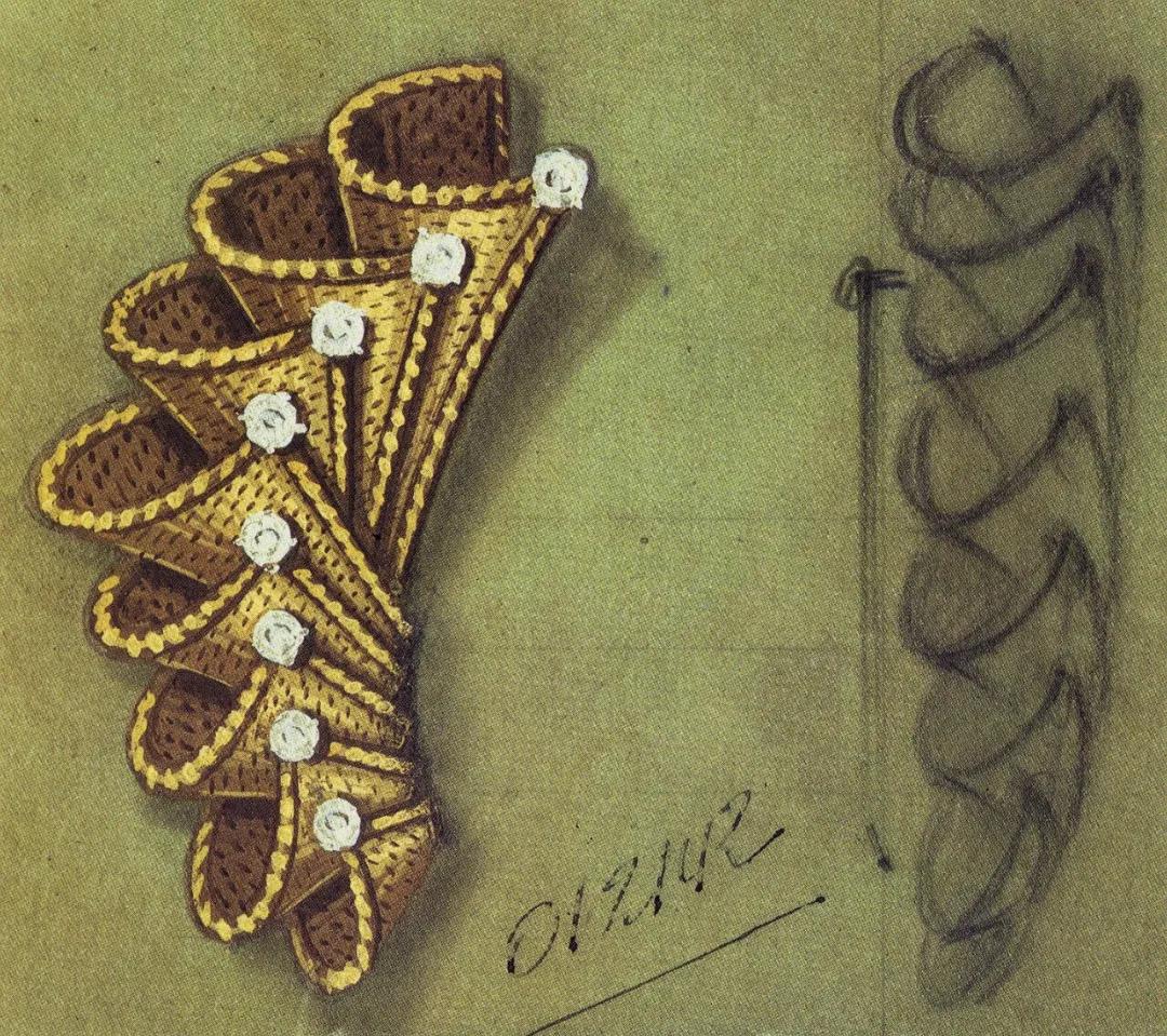 上圖是1950年代的卡地亞胸針設(shè)計圖稿,