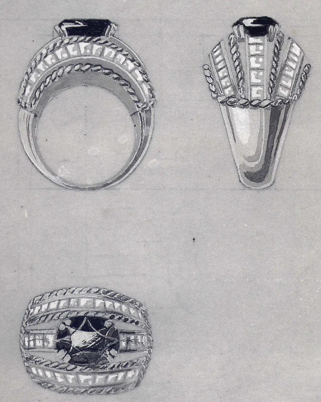 上圖為夢寶星的戒指三視圖設(shè)計稿,