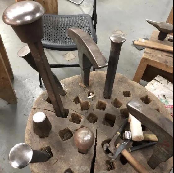 一開(kāi)始我對(duì)這些天天瞧見(jiàn)使用的工具沒(méi)曾上過(guò)心,還是在課余和學(xué)姐聊天的過(guò)程中才知道這些工具的寶貴,尤其是那一套鍛造專(zhuān)用的鐵砧,不僅制作費(fèi)時(shí),價(jià)格也是讓人咂舌,以至于我在后面做東西的過(guò)程中都小心翼翼的對(duì)待這些朝夕相處的“大寶貝們”。更不用說(shuō)專(zhuān)業(yè)的焊接、打磨、鋸切設(shè)備,可以說(shuō)是一應(yīng)俱全。這使得金工專(zhuān)業(yè)的學(xué)生很少因?yàn)橛布O(shè)施的問(wèn)題發(fā)愁,也使得我們?cè)谡n余有很多的機(jī)會(huì)去試試我們感興趣的技法和創(chuàng)作方式。