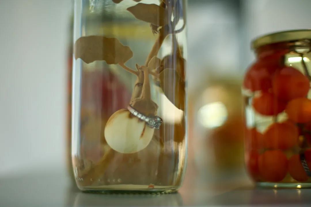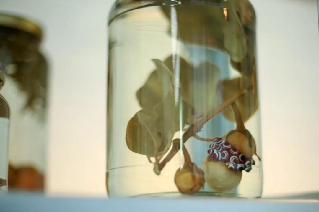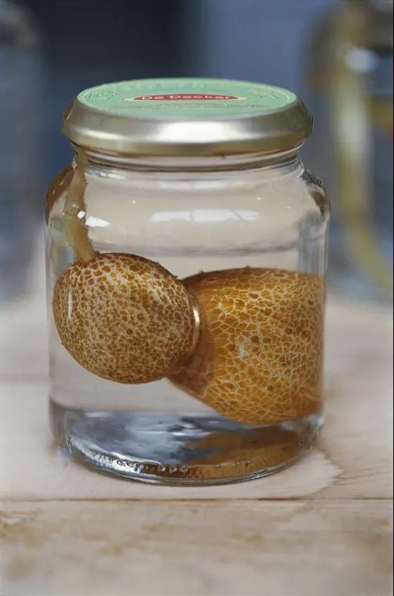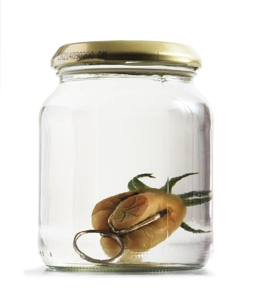 保存在裝有白醋的透明玻璃瓶里展示