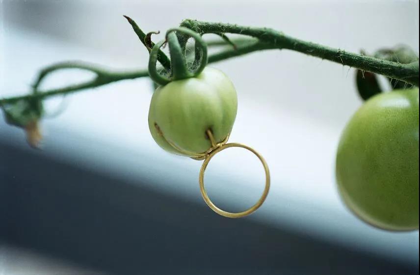 逐漸與戒指嵌在一起的小西紅柿