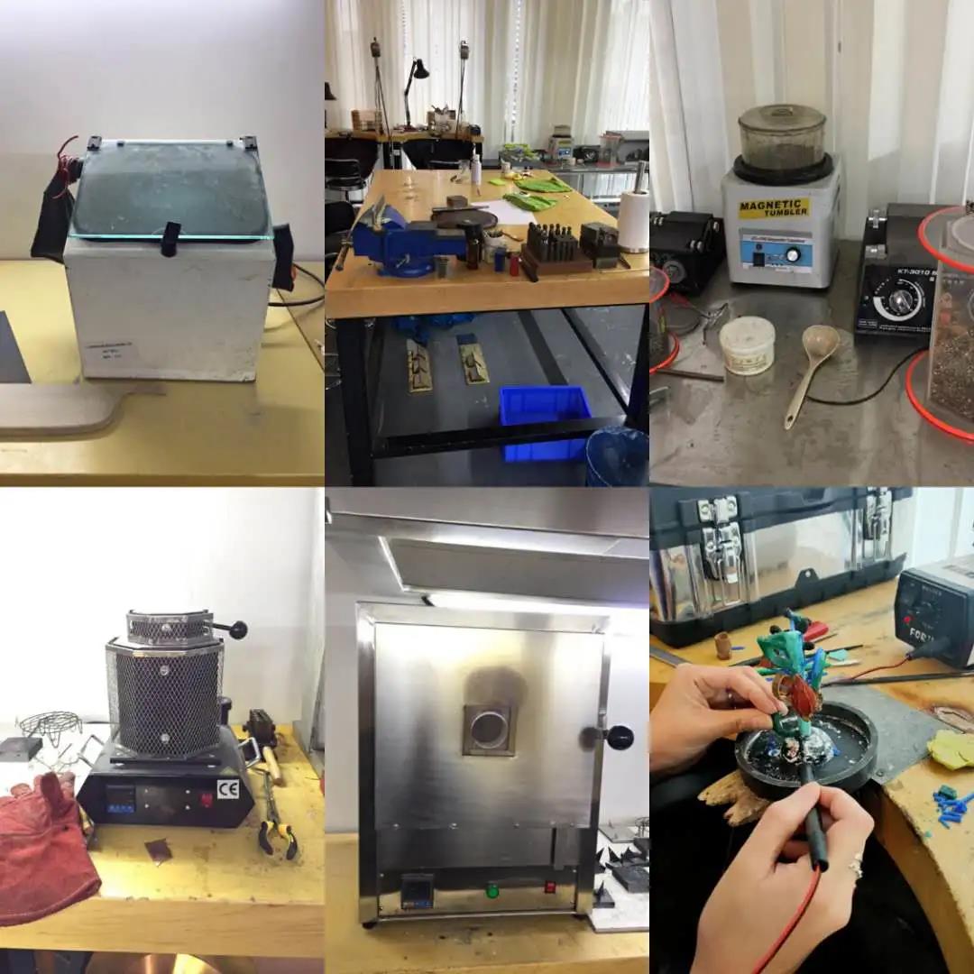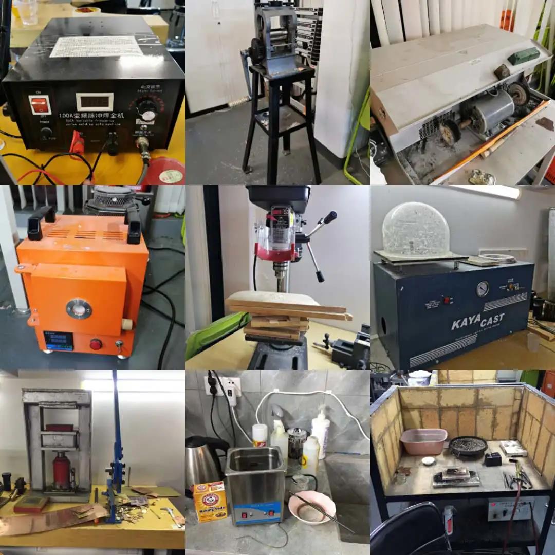 壓片機(jī) Rolling Mill • 超聲波清洗機(jī) Ulrasonic Cleaner • 熔焊機(jī) Soldering Machine • 電焊機(jī) Point-Welding Machine • 酸洗鍋 Pickle Tank • 棉綸拋光機(jī) Polishing Motor • 磁針拋光機(jī) Magnetic Tumbler • 滾動(dòng)拋光機(jī) Single Barrel Tumble • 鉆臺 Drilling Machine • 噴砂機(jī) Mini Sand Blaster Machine • 大小琺瑯爐 Large and Small Kilns • 熔金爐 Metal Melting Furnace • 抽真空鑄造機(jī) Vaccume Casting Machine • 油壓機(jī) Hydraulic Press • 大桌剪 Bench Cutter • 平拋機(jī) Lapping/Polishing Machine • 小型砂帶/沙盤機(jī) Mini Sand-Belt Machine
