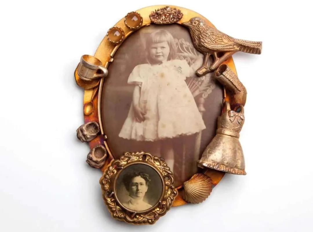 “改造的錫罐頭,鋼,鐵,銀,寶石、家用烘焙工具,餅干罐和藥罐,常常成為戰(zhàn)爭(zhēng)時(shí)期女性居家角色的視覺意象。舊錢包取下的皮革與古舊的骨質(zhì)代幣則隱喻了錢幣。這些對(duì)收藏家以外的一般人不再具有意義的物件,經(jīng)過重置提供了新的敘事:告訴人們過去的女人的故事。