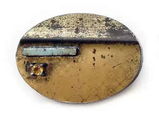 Repurposed baking tin, citrine, 18ct Gold, Steel.
