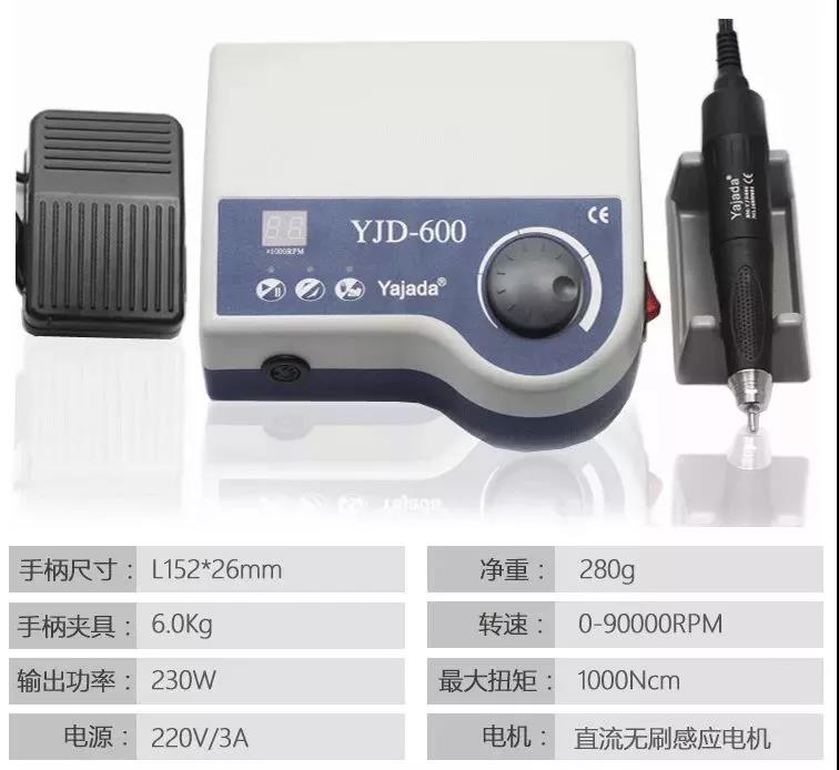 這些機(jī)頭可能比懸掛式電頭運(yùn)行更平穩(wěn),盡管便攜式電機(jī)中的“馬達(dá)”在機(jī)頭內(nèi)部,但速度依然可以高達(dá)50000轉(zhuǎn)/分??刂葡浠蚰_踏板控制速度??刂坪锌梢赃x擇速度,轉(zhuǎn)盤與腳踏板來進(jìn)行速度控制,旋轉(zhuǎn)方向。它的扭力、轉(zhuǎn)速、穩(wěn)定性、靜音效果都很好,可以實(shí)現(xiàn)雙向旋轉(zhuǎn)、型號也很多。