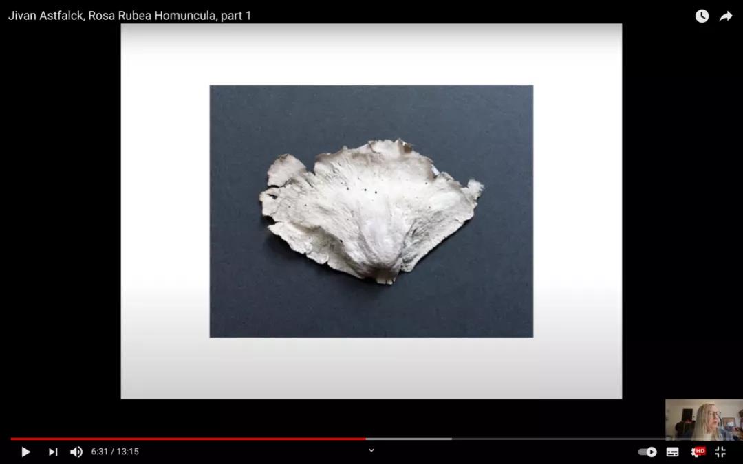 Jivan Astfalck教授的Rosa Rubea Homucula系列創(chuàng)作中,希望通過(guò)使用隱喻性幫助來(lái)描繪投入情感上的新的創(chuàng)意表達(dá)與呈現(xiàn)形式。在《Rosa Rubea Homuncula》講座中,在赤化(rubedo)的過(guò)程中,嘗試萃取玫瑰的精華,她使用稀釋的銀黏土附著在玫瑰的表面來(lái)制作。