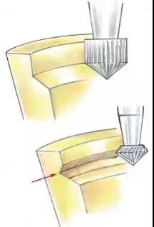 牙針——在包鑲時也是得力工具助手。主要用于將一些凹凸不平的部位掃順,使得被清理的部位線條清晰。也可以用于清潔包鑲位置的邊邊角角。在軌道鑲也經(jīng)常使用開夾層、穿孔等。