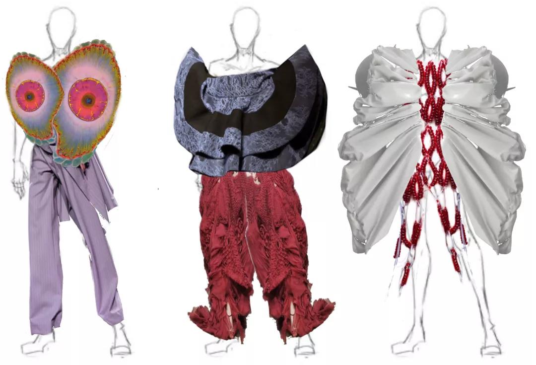 ▲Zhou同學(xué)以“外星人觀察人類的視角”進(jìn)行的服裝設(shè)計(jì)