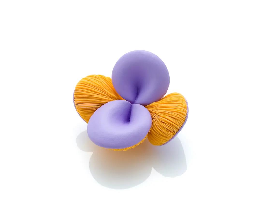 “我先是對(duì)蘑菇這一生物產(chǎn)生了好奇,我對(duì)蘑菇傘蓋之下相互交織的奇異美妙的形態(tài)著迷。生長(zhǎng)在狹小空間的蘑菇啟發(fā)了我創(chuàng)作以“增殖形象”為主題的珠寶。隨著我了解蘑菇在自然界中的生長(zhǎng)和作用,我對(duì)它們也越來(lái)越感興趣。我們離真菌如此之近,以至于我們甚至都沒(méi)有注意到它們。菌絲體,也可以看作是蘑菇的根,在我們腳下的地面上蔓延出難以想象的范圍。蘑菇,仍然是具有許多科學(xué)未解奧秘的實(shí)體,它在我的工作中占有重要地位,自從我成為首飾藝術(shù)家以來(lái),我便一直被蘑菇的特征影響并因此創(chuàng)作一系列的作品。”